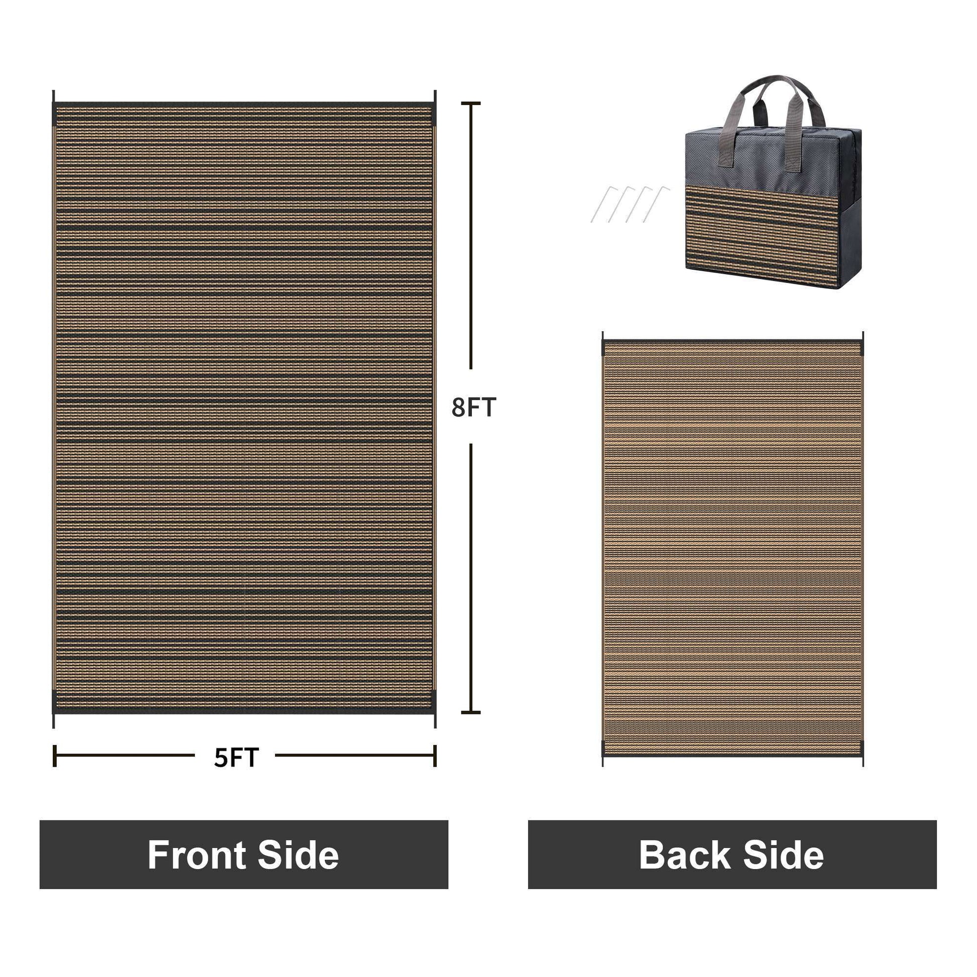 KUETH 5'x 8' Outdoor Waterproof Rug Camping Mat Patio Carpet,Black&Brown