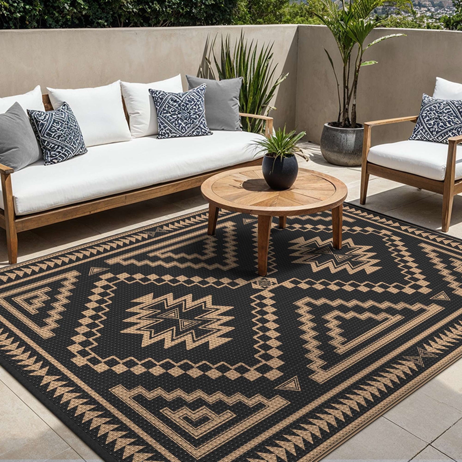 KUETH 6' x 9' Outdoor Waterproof Rug Camping Mat Patio Carpet,Black & Brown