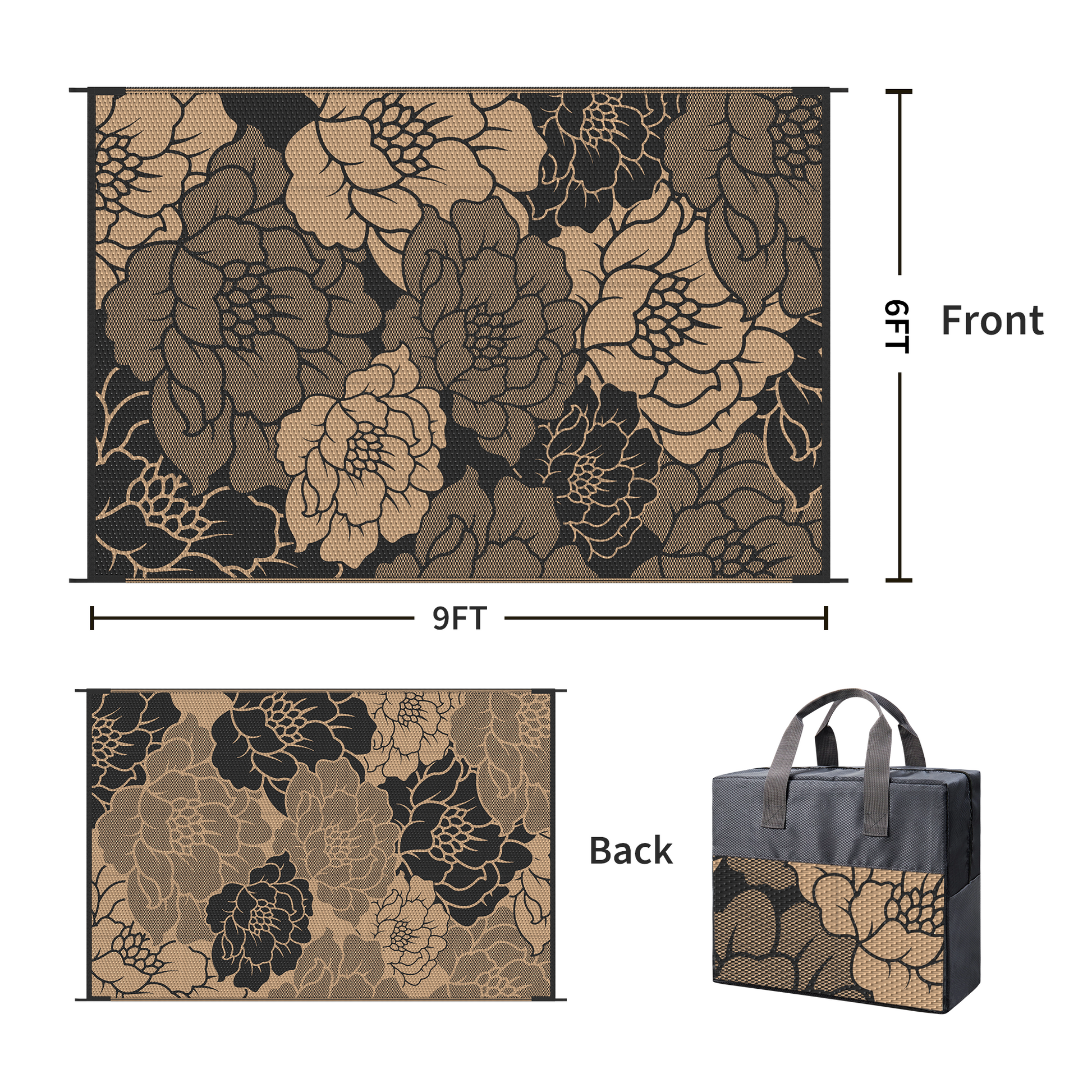 KUETH 6'x 9' Outdoor Rug Plastic Waterproof Outside Foldable Mat UV Resistant Patio RV Deck Carpet,Black Brown