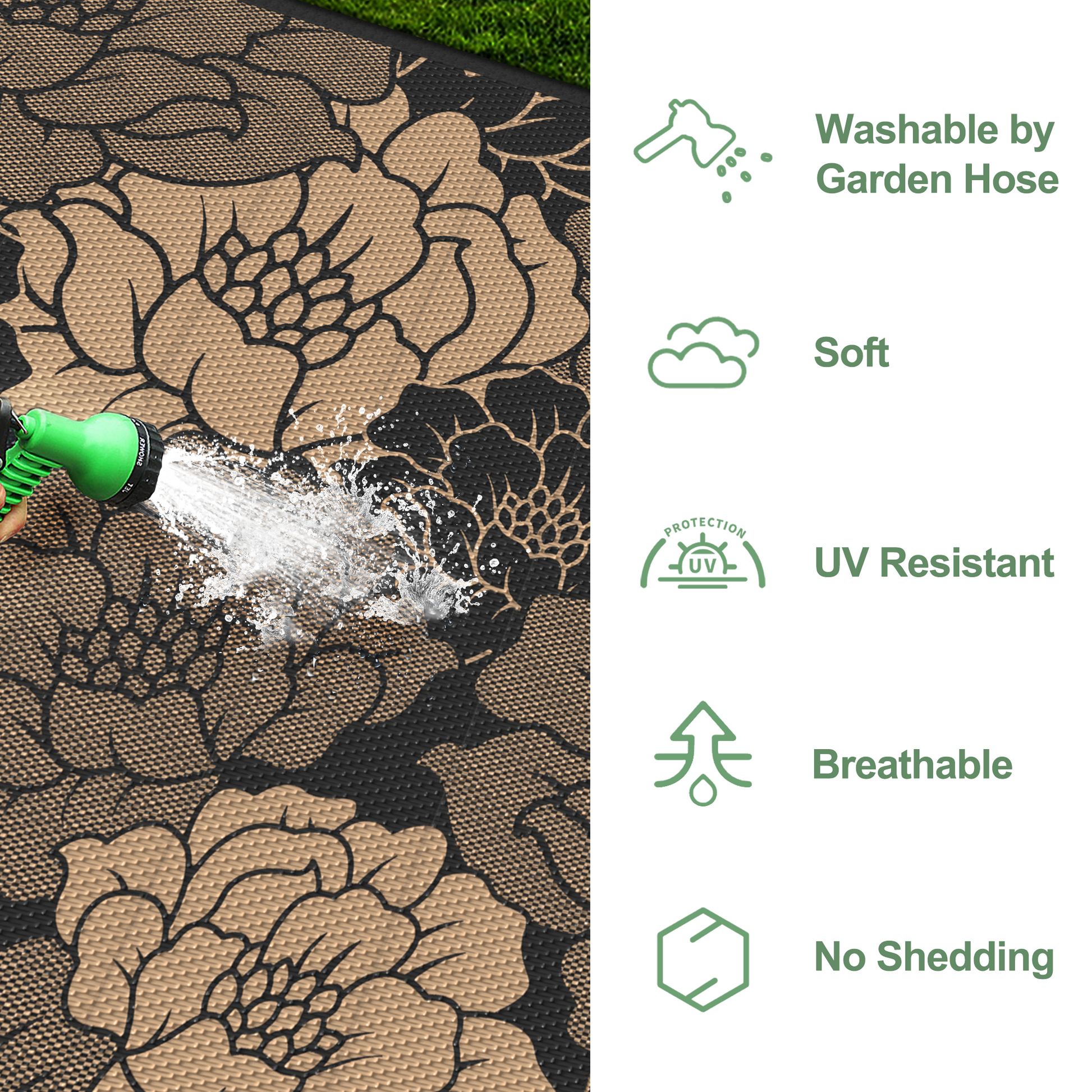 - 【Reversible Design】The KUETH reversible outdoor rug features a double-weave construction and showcases a large, eye-catching peony flower pattern. You can flip it over to use either side, depending on the decor of your patio, porch, or balcony, effortlessly infusing a touch of natural beauty into your space.