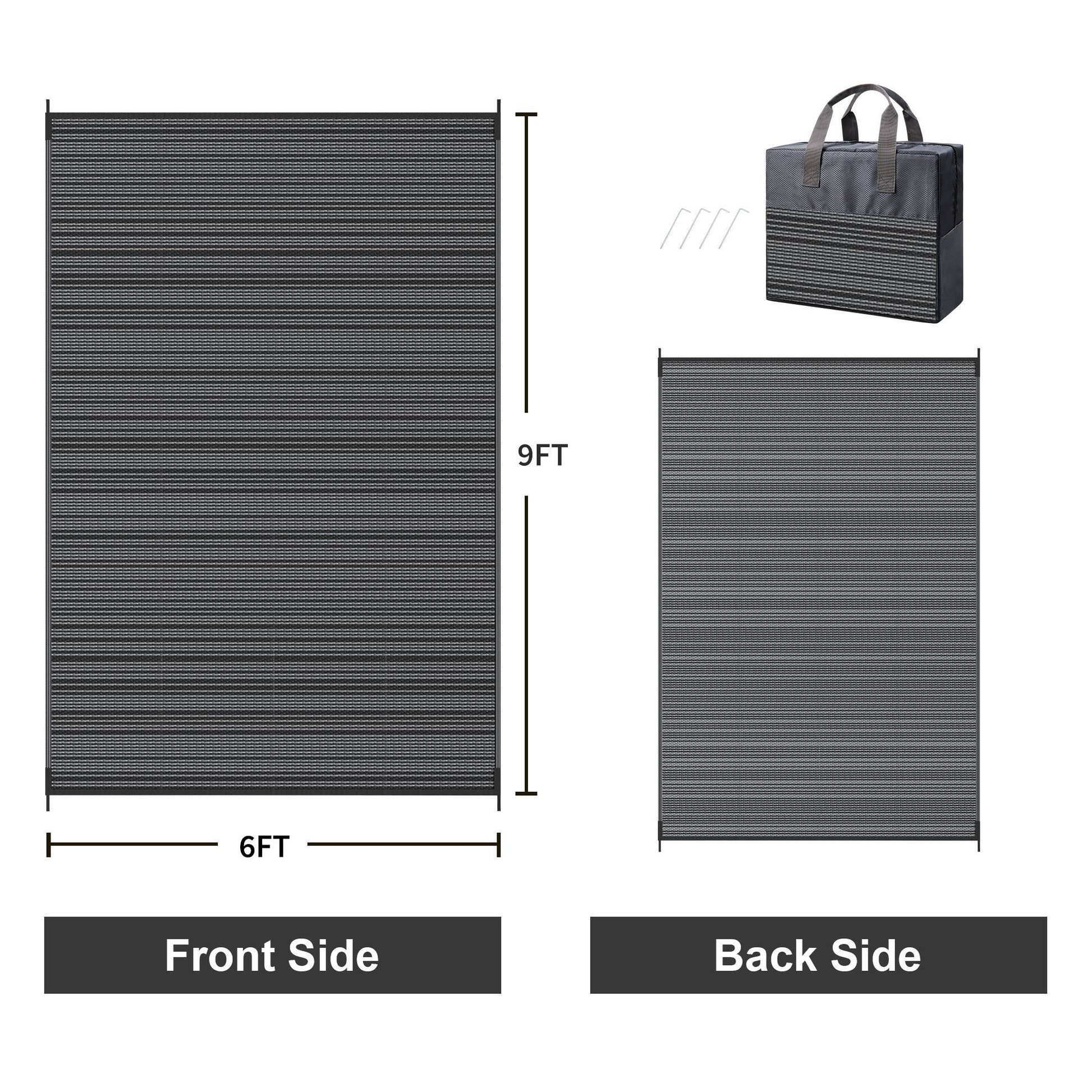 KUETH 6'x 9' Outdoor Waterproof Rug Camping Mat Patio Carpet,Black&Gray